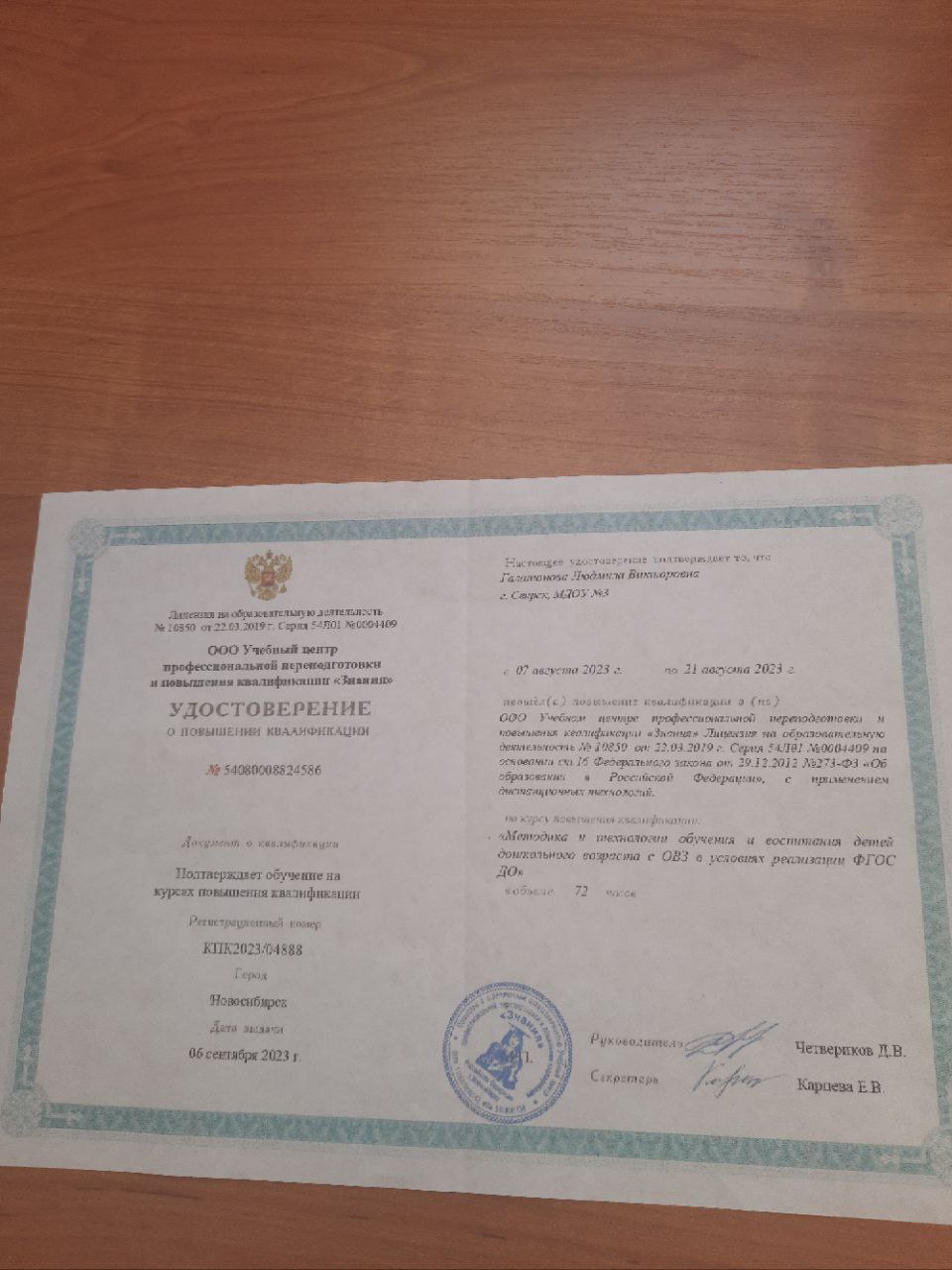 Удостоверение о повышении квалификации
